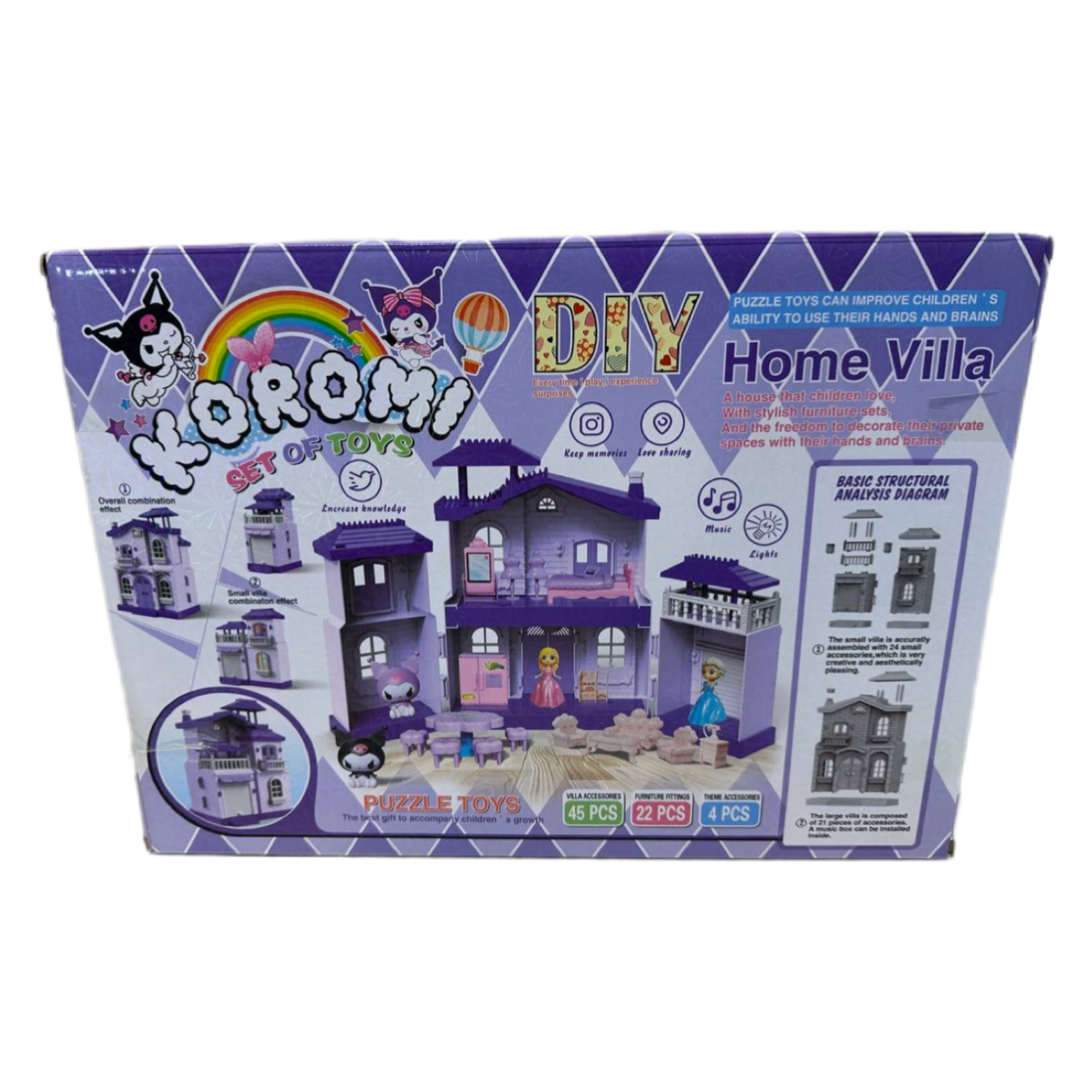 ست اسباببازی خانه ویلایی KOROMI یک مجموعه پازلی و ساختنی جذاب برای کودکان بالای ۳ سال است که امکان ساخت و طراحی یک ویلای چندطبقه فانتزی را فراهم میکند. این محصول از قطعات متنوع ساختمانی، مبلمان داخلی و اکسسوریهای تزئینی تشکیل شده و کودک میتواند با سرهمکردن آنها، خانه دلخواه خود را بسازد و چیدمان کند.این ست علاوه بر ساخت، قابلیت بازی نقشآفرینی را نیز دارد و کودک میتواند با استفاده از عروسکها و وسایل داخلی، سناریوهای مختلف زندگی روزمره را شبیهسازی کند. طراحی فانتزی با رنگبندی بنفش جذاب، جزئیات دقیق و الهامگرفته از دنیای KOROMI، این خانه را بسیار چشمنواز کرده است.خانه ویلایی KOROMI چراغدار و موزیکال بوده و تجربهای واقعیتر و هیجانانگیزتر از بازی را فراهم میکند. این مجموعه شامل ۴۵ اکسسوری ویلا، ۲۲ قطعه مبلمان و ۴ قطعه تم است و به تقویت خلاقیت، تمرکز، هماهنگی دست و چشم و مهارتهای حرکتی کودک کمک میکند. این محصول انتخابی عالی برای هدیه تولد و مناسبتها محسوب میشود.